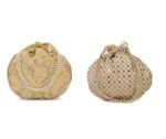 Home W_Bags Potlis PK 2 Combo – Designer Embroidered Potli Bag – Golden & Beige