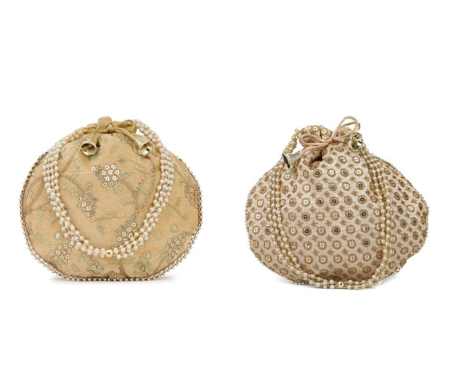 Combo – Designer Embroidered Potli Bag – Golden & Beige