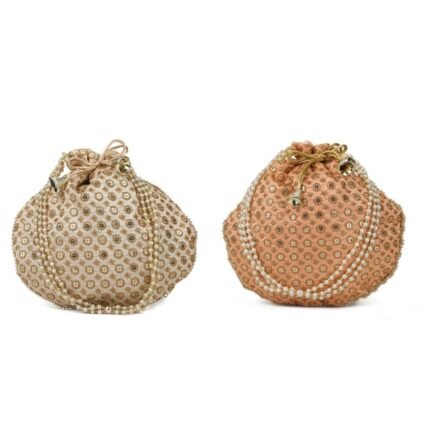 Combo of Golden & Beige Designer Embroidered Potli Bag