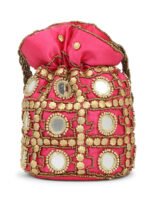 Combo – Designer Embroidered Potli Bag – Golden & Pink