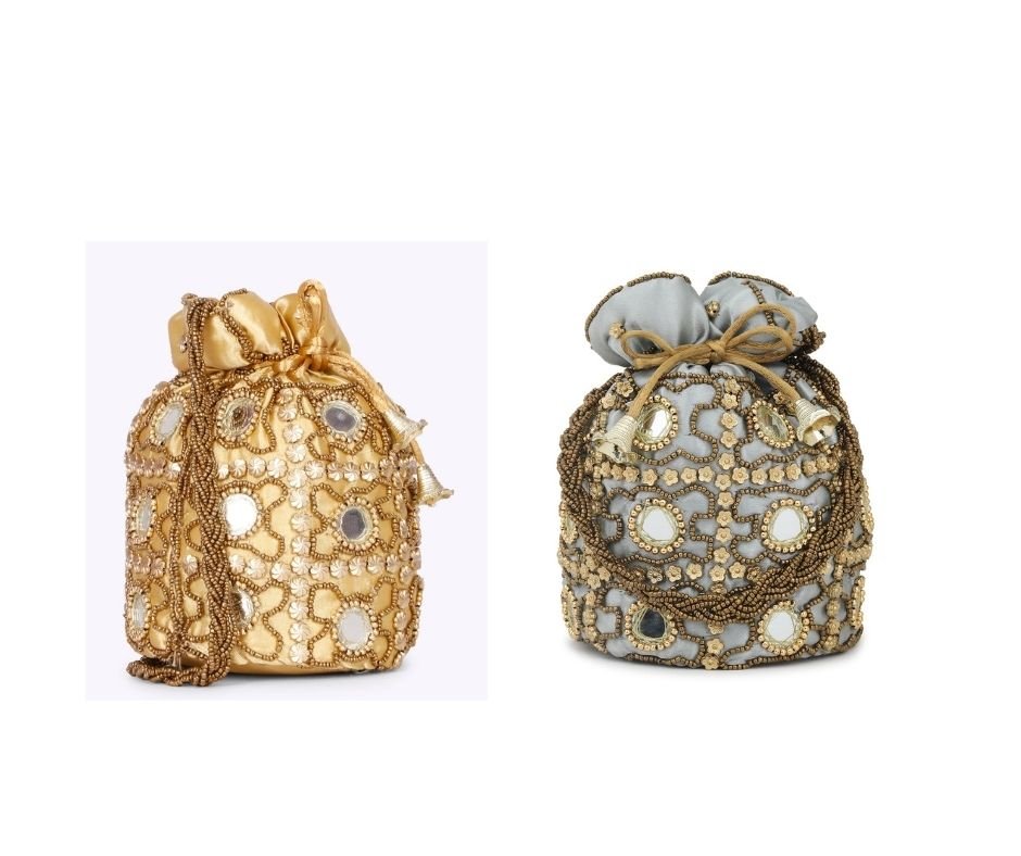 Be the first to review “Combo of Gold & White Color Designer Embroidered Potli Bag” Cancel reply
