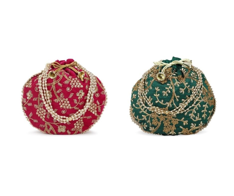 Be the first to review “Designer Embroidered Potli Bag Combo- Pink & Green” Cancel reply