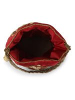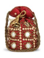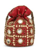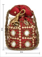 Maroon embellished potli Has wrist loop 1 main compartment with drawstring closure Size & Fit Size : 9 x 9 x 3 Inch (Length x Width x Depth ) Material & Care Fabric Wipe with clean, dry cloth