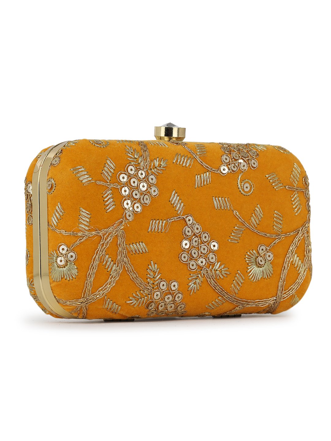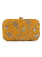 Home W_Bags Clutches Mustard Embroidered Box Clutch For Girls and womens
