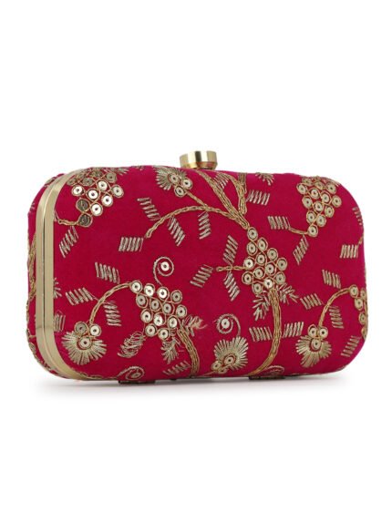Pink Embroidered Box Clutch For Girls and womens