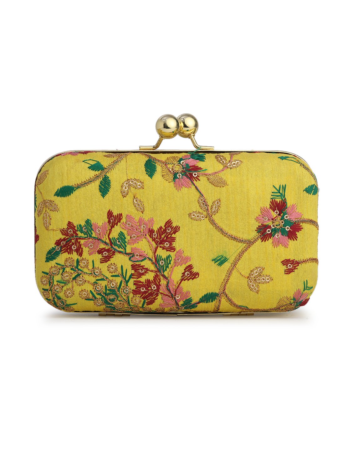 Home W_Bags Clutches Yellow & Pink Embroidered Box Clutches For Girls and womens